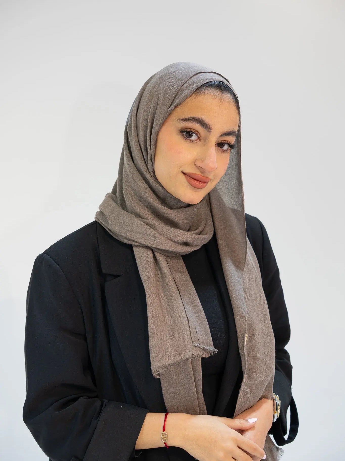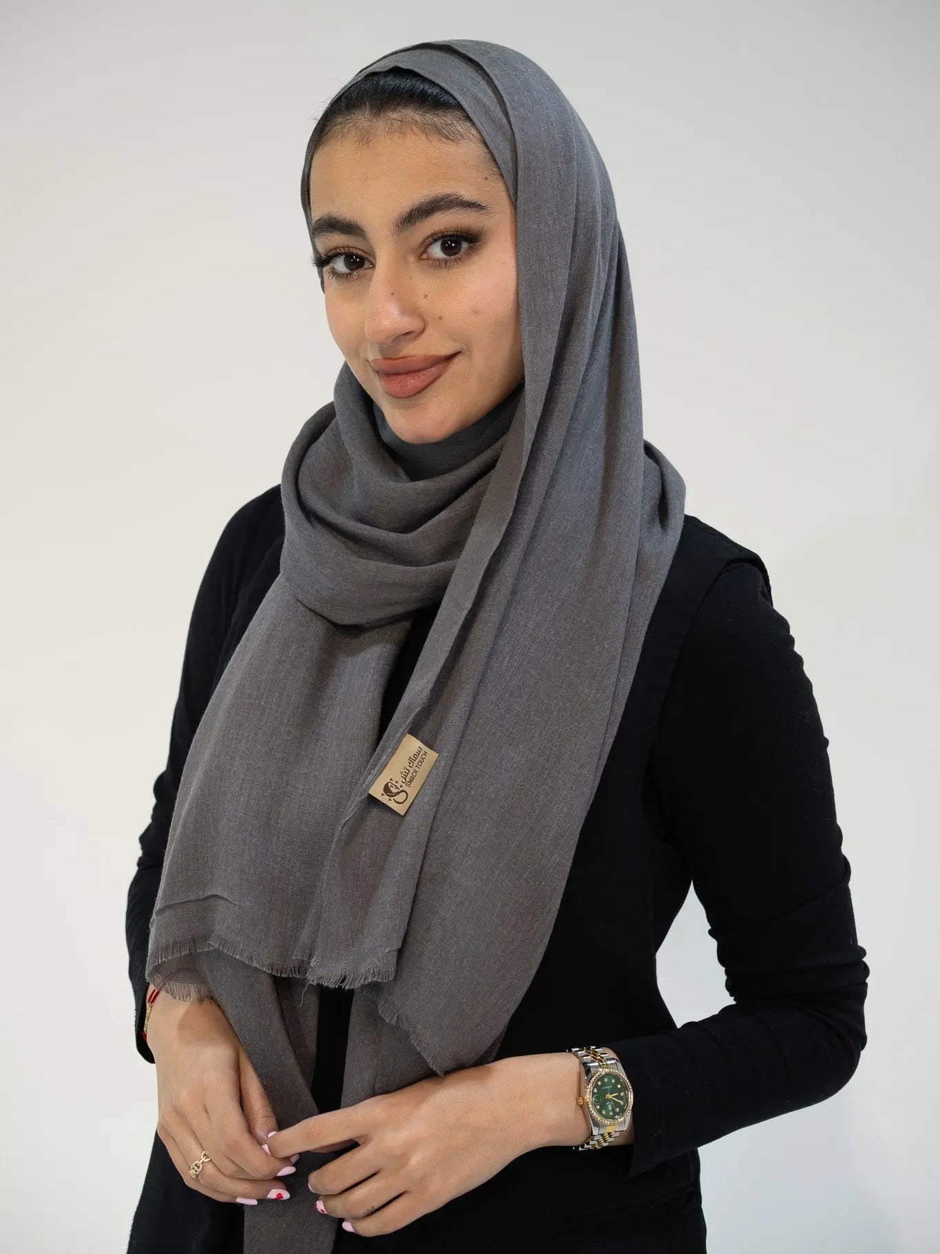 شال مودال ميلانج راقٍ—انسيابي ويعطي شكل مرتب وفخم. خفيف جدًا (حوالي ١٠٠ جم) ومريح للتلبس طول اليوم وسهل بالتنسيق.